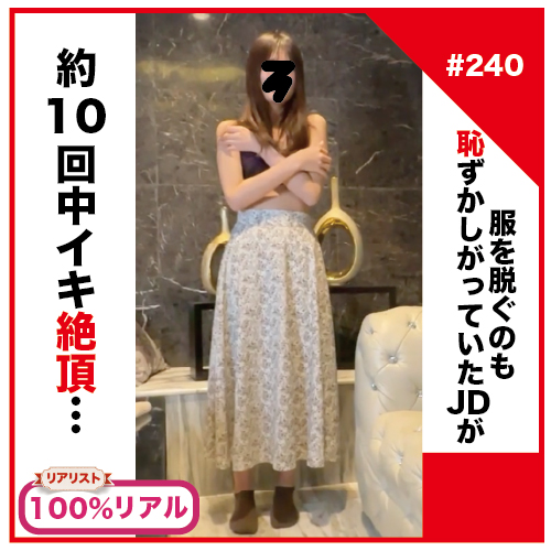 【完全素人リアル動画#240】服を脱ぐのも恥ずかしがっていたJDが約10回絶頂!学校帰りの撮影。彼氏がいるけど中出しです…。#100%リアル